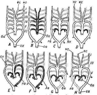 4-5 пар А. д. становятся жаберными сосудами. У наземных позвоночных из