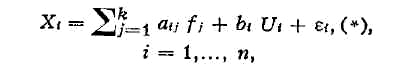 где случайные величины fjсуть общие факторы, случайные величины Ui суть факторы, специфические для величин Xi и не коррелированные с fj, a ei суть случайные ошибки. Предполагается, что k < п задано, случайные величины ei независимы между собой и с величинами fjи Ui и имеют